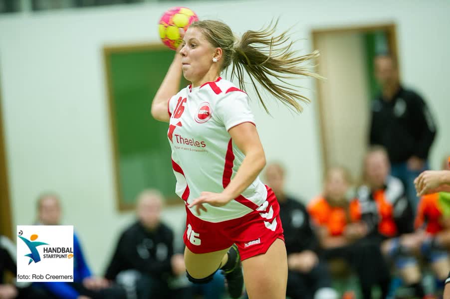 FOTO: Danique van Rijswijck legt aan voor een schot op doel. (foto: Rob Creemers)