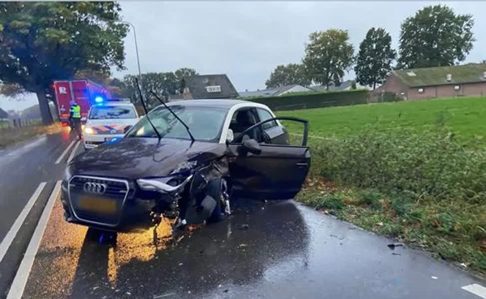 Het ongeval vond op de Maasbreeseweg plaats. De schade aan vooral de linkerkant van de auto was groot. Het is niet duidelijk of er iemand gewond is geraakt.