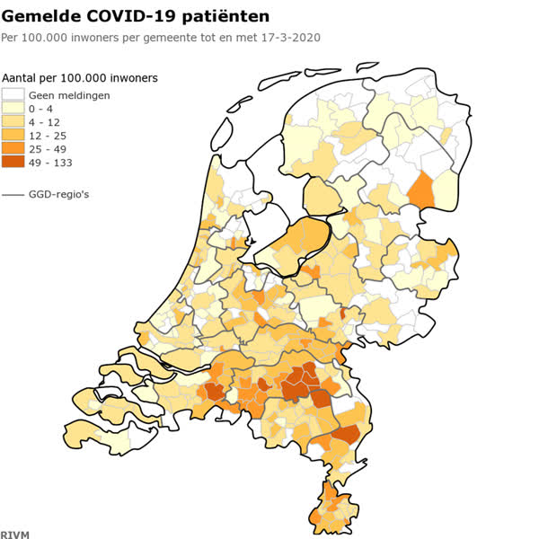 De lijst is gebaseerd op de informatie van het GGD en gemeenten. Daarbij moet worden opgemerkt dat niet iedereen getest wordt, dus het aantal in andere gemeenten ook hoog kan zijn.