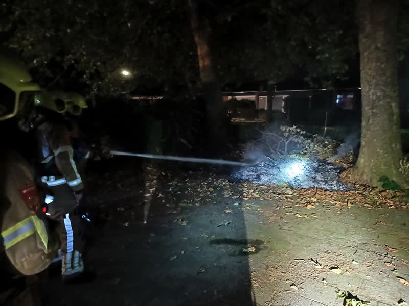 De brandweer is uitgerukt voor een hoop bladeren dat in brand stond. Dat gebeurde op In de Pas in Helden.