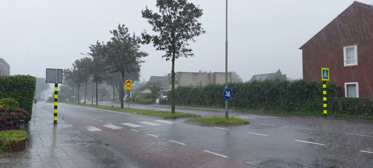 Een flinke hoosbui trok iets voor 12.00 uur over Peel en Maas. De regen kwam met bakken naar beneden, maar heeft tot nu toe nog niet voor veel schade gezorgd.