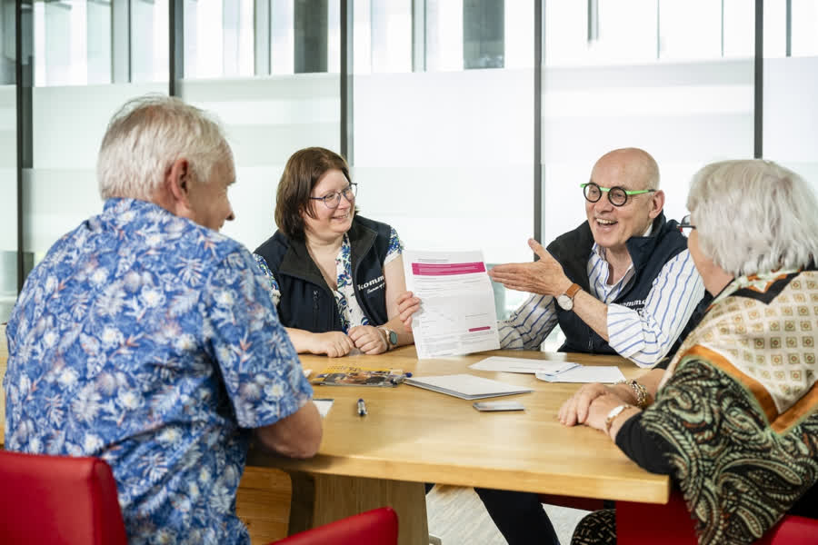 OV-ambassadeurs geven tijdens de maandelijkse inloopspreekuren advies en tips aan 55-plussers over het reizen met trein of bus.