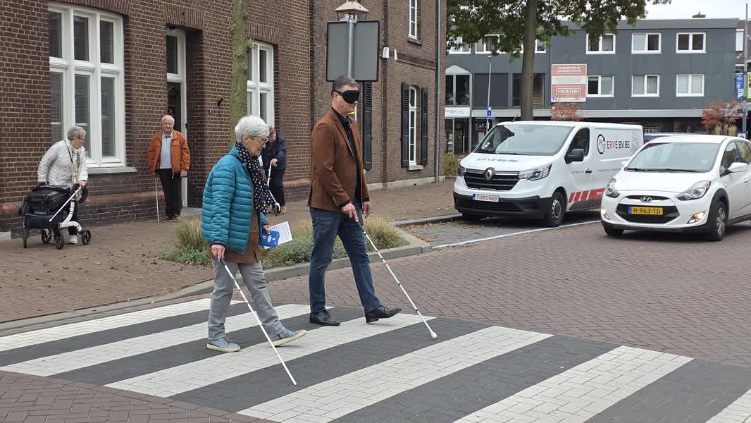 De witte stok is hét symbool van zelfstandigheid voor mensen met een visuele beperking. Met de stok geven zij niet alleen aan dat ze slechtziend of blind zijn, maar ook wat hun intenties zijn bij het oversteken. “Eerst zetten ze de stok naast zich om aan te geven dat ze willen oversteken. Zodra ze de stok horizontaal voor zich houden, betekent dat dat ze daadwerkelijk gaan oversteken. Andere weggebruikers horen dan te stoppen, maar dat gebeurt helaas niet altijd,” zo werd tijdens de actie benadrukt.