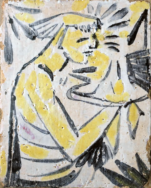 Waarom de tegel bij het steenafval terecht is gekomen is nog een vraag. "Waarschijnlijk is de maker van de tegel er niet tevreden mee geweest of was het een schetsontwerp voor een groter kunstwerk", laat de stichting weten.