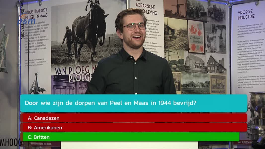 Wie vond de gouden Peelhelm? Wat zijn de kleuren van de vlag van de voormalige gemeente Helden? Hoe heet de voetbalclub van Maasbree? Wat is de naam van de burgemeester van Peel en Maas? Vragen over nieuws, sport, cultuur en geschiedenis komen aan bod in de quiz ´Het geheugen van Peel en Maas´. Museum Peel en Maas en Omroep P&M zijn op zoek naar kandidaten voor dit tv-programma. Ben jij de ultieme Peel en Maas kenner? Teams van twee personen nemen het elke aflevering tegen elkaar op. Het winnende team wint een arrangement van het museum.