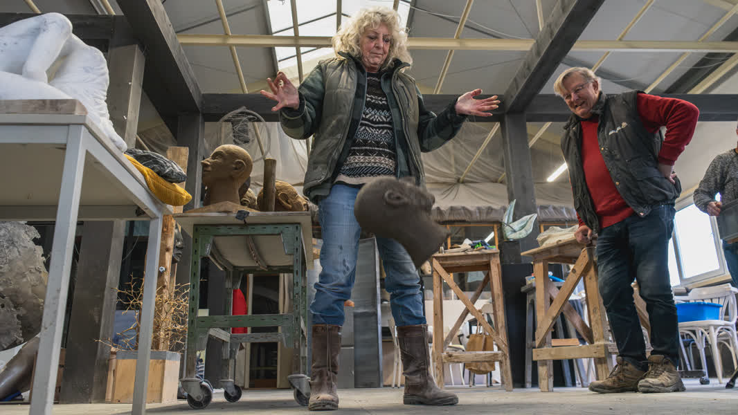 De expositie bevat een breed scala aan kunstvormen: schilderijen, keramiek, beeldhouwwerk, glaskunst, zeefdrukken en pentekeningen. Marjan Wijnhoven toont een werk dat refereert aan de coronacrisis en de situatie in Kessel. Dat dorp werd in de coronapandemie zwaar getroffen. Veel inwoners werden er ziek en stierven. "Ik ben mijn ei kwijt, maar het werk wordt niet zo gewaardeerd”, zegt de Baarlose." Mensen willen niet graag herinnerd worden aan die dingen", vertelt Wijnhoven, die aangeeft dat er in Kessel zelfs weerstand tegen haar werk was. Het is veel beter om erover in discussie te gaan met iedereen en te kijken hoe kunnen we dit voorkomen. “Je hoeft ook niet alle ellende en verdriet weg te stoppen. Daar schiet je ook niks mee op.”