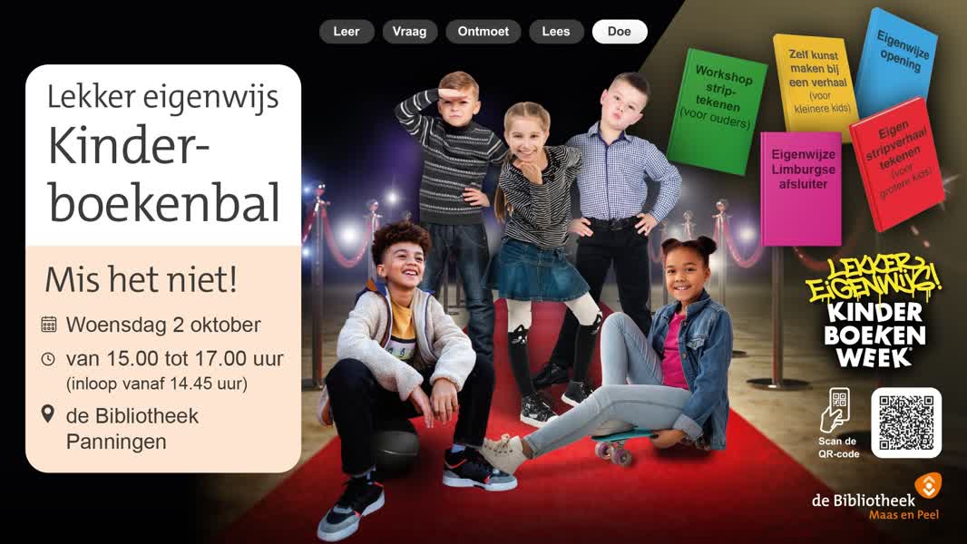 De Kinderboekenweek start met Het Lekker Eigenwijs Kinderboekenbal op woensdag 2 oktober in de Bibliotheek Panningen. Het begint om 15.00 uur en duurt tot 17.00 uur. Inloop is vanaf 14.45 uur.