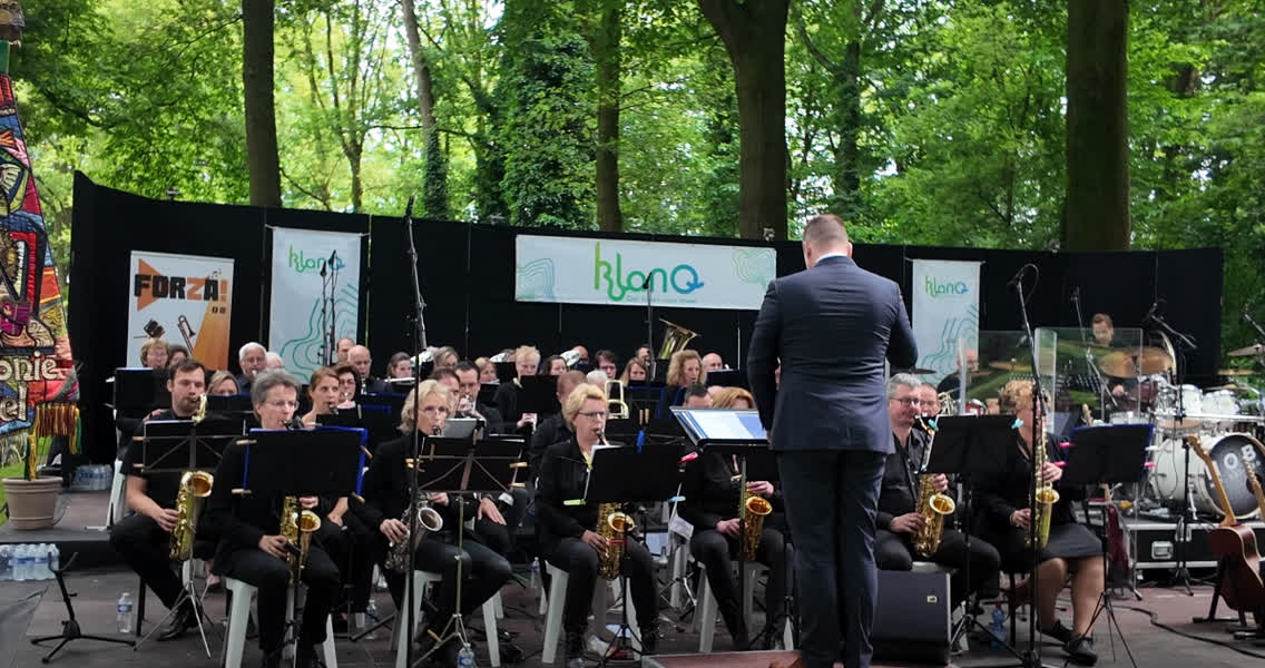 Muzikale klanken in de tuin van een familie, zondag in Beesel. Het jubileumconcert van Klanq vond er plaats. De vereniging bestaat 125 jaar.