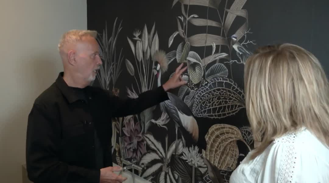 Hij begon eraan in de nacht. “Om half twee begonnen, om half vier was ik klaar. Gewoon proberen. Voor honderd euro aan behang – als het niks is, plak je iets anders.” De uitdaging zat in de precisie. “Je moet zorgen dat die nerven netjes op elkaar aansluiten. Dan heb je het. En ja, het pakt geweldig uit. Het maakt de badkamer echt áf.”