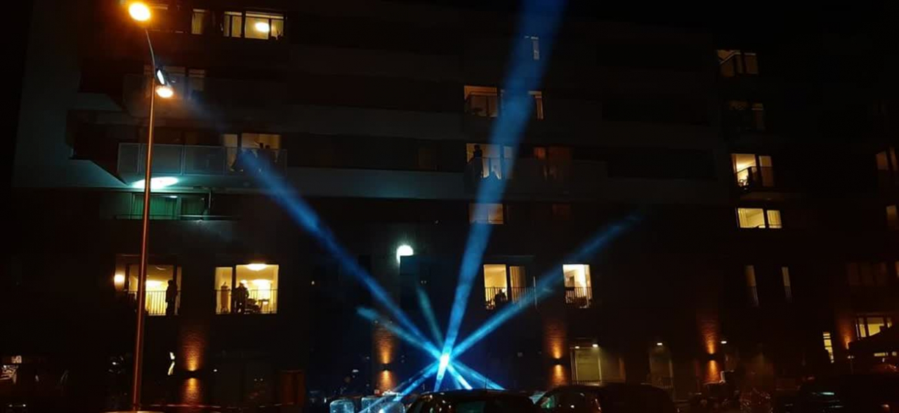 De bewoners van de Groenling in Panningen zijn dinsdagavond om 18.00 uur getrakteerd op een lichtshow. Tientallen lichten stonden opgesteld rondom het gebouw, waar voornamelijk ouderen wonen.