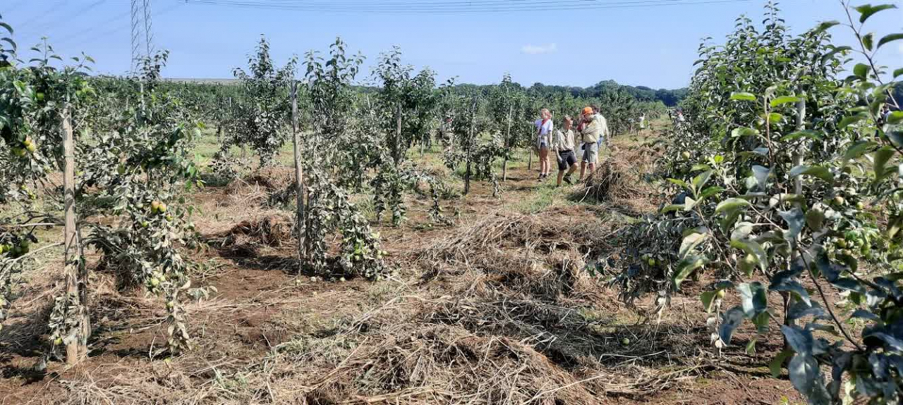 Aanvankelijk hadden scoutingleden uit het Gelderse Lunteren afgelopen weekend een tweedaagse wandeltocht langs de Maas, maar het hoogwater zette een streep door die activiteit. Desondanks zaten de kinderen niet bij de pakken neer en hielpen ze woensdagochtend mee met het schoonmaken van fruitbomen in Baarlo.Fruitbedrijf Görtz aan de Ingweg werd namelijk flink getroffen door het hoogwater. "Ik had dit niet zo erg verwacht", reageert een scoutinglid terwijl hij het stro uit de fruitbomen haalt.Troep zichtbaarDe 50 scoutingleden, die op zomerkamp zijn bij Jong Nederland Maasbree, wilden iets doen toen hun eigen tocht niet doorging. Bij het getroffen fruitbedrijf was hulp meer dan welkom. Nu het waterpeil in de Maas weer is gezakt, was goed zichtbaar wat er achter is gebleven. Zo was er veel stro, dat door de Maas was meegesleurd, aan de fruitbomen vast blijven kleven.Tragisch"Het is tragisch als je nagaat dat dit het levenswerk van een boer is", zegt Arjen Droog, voorzitter van Scouting Lunteren. "Het kostte ook niet veel moeite om onze kinderen te motiveren om de handen uit de mouwen te steken en hier aan de slag te gaan."De getroffen boer Lion Kniest is blij dat de kinderen kwamen helpen. "We zitten nu vol in de morellenoogst, dus het is super druk. Dat ze dan komen helpen is tof."
