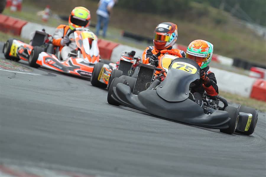 In de finale mocht hij vervolgens als vijfde starten op zijn nieuwe Falcon-kart. Luuk: “Meteen daarna lag ik al vierde. Later in de race heb ik de top drie ingehaald en heb ik ook nog een tijdje op kop gereden.” Lang leek het er zelfs op dat hij de race ging winnen, want ook in de slotfase racete de talentvolle rijder op P1.