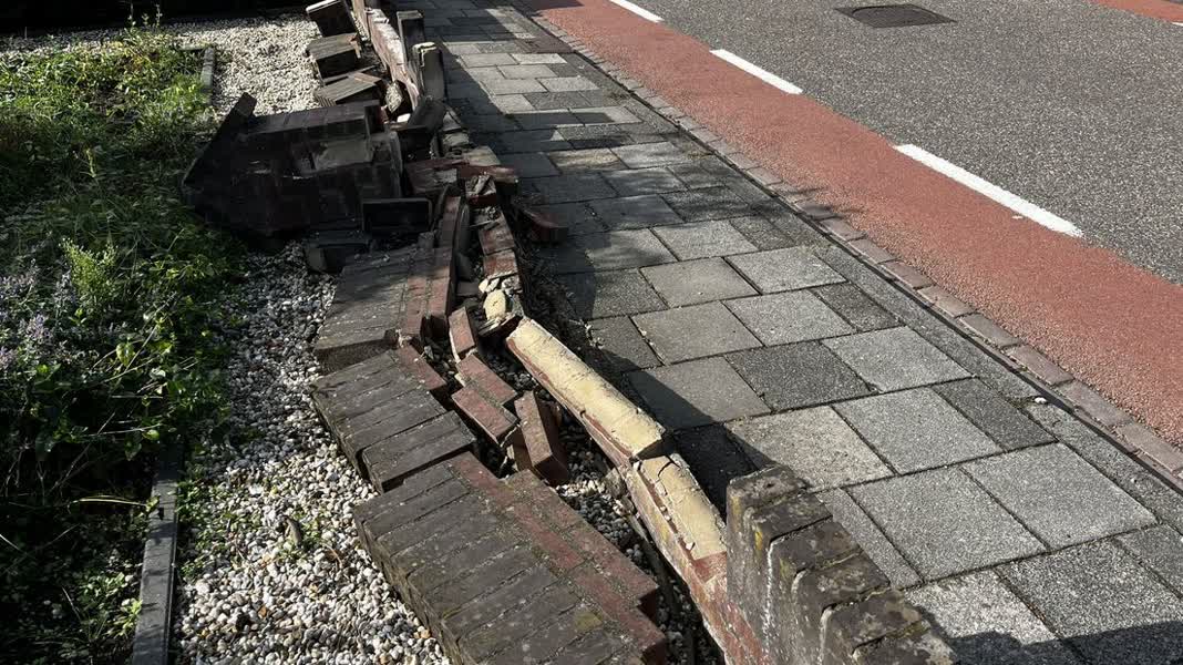 Het muurtje dat vaak omver werd gereden Foto: John Jacobs