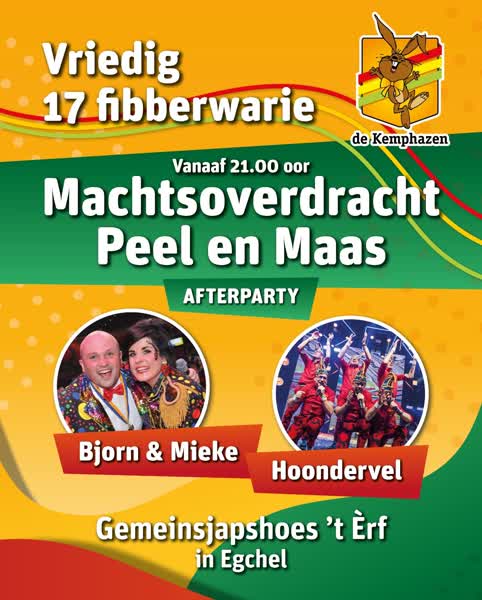 Er zijn gedurende de avond optredens van de Prins & Aod Prinse uit Grashoek en de Breurkes uit Panningen. Later op de avond zullen Bjorn en Mieke en Hoondervel optreden. Omroep P&M zendt alleen het officiële deel uit, tot 20.00 uur.