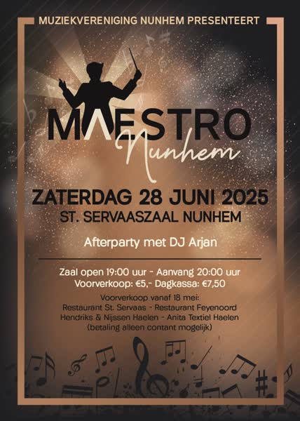 Zaterdag 28 juni in de St. Servaaszaal in Nunhem. De zaal gaat open om 19.00 uur. Aanvang concert 20.00 uur.