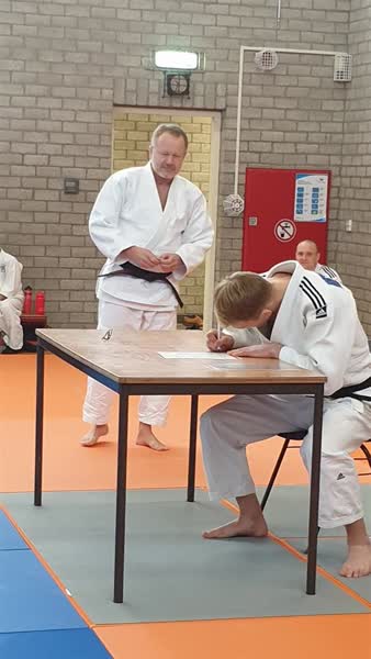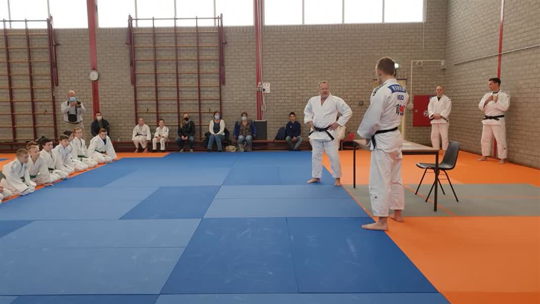 De Egchelse judoka Mark van Dijk is zaterdag verrast met de erepromotie tot 2e Dan judo door Judobond Nederland district Limburg. Mark is al vanaf 2007 lid van judoclub Helden. Vanaf zijn 16e is hij via de regionale Trainingscentra RTC Echt en RTC Eindhoven inmiddels sinds september doorgestroomd naar de nationale selectie op het NTC Papendal. Hier traint en woont Mark fulltime gecombineerd met zijn studie.De erepromotie tot 2e Dan judo heeft Mark te danken aan zijn uitzonderlijke prestaties in zijn laatste jaar in de leeftijdscategorie tot 18 jaar toen hij zilver pakte op het EK in Sarajevo en later dat jaar brons op de YOG (Youth Olympic Games) Buenos Aires. Tevens heeft hij in zijn eerste jaar in de -21 jaar al verrassende podiumplekken weten te bemachtigen op nationaal en internationaal niveau. Ook de start van zijn tweede jaar was erg hoopvol met een 5e plaats op het internationale senioren toernooi in Visé en een zilveren medaille op het NK -21jaar. Voor Judobond Nederland voldoende redenen om Mark op te nemen in de nationale selectie op Papendal waar hij momenteel dagelijks met de beste junioren en senioren van Nederland traint.