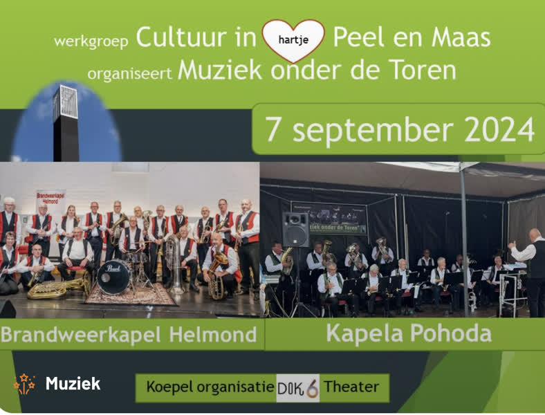 Het tweede deel (van 15.15 tot 16.45 uur) wordt ingevuld door Kapela Pohoda uit Panningen e.o. Een welbekende formatie bij Muziek onder de Toren.