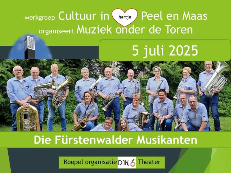 De werkgroep Cultuur in Peel en Maas organiseert wekelijks een muziekoptreden aan het Raadhuisplein Onder de Toren in Panningen.