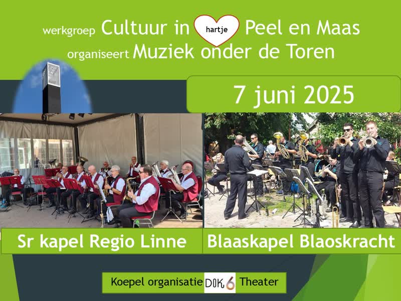 De werkgroep Cultuur in Peel en Maas organiseert wekelijks een muziekoptreden aan het Raadhuisplein Onder de Toren in Panningen.