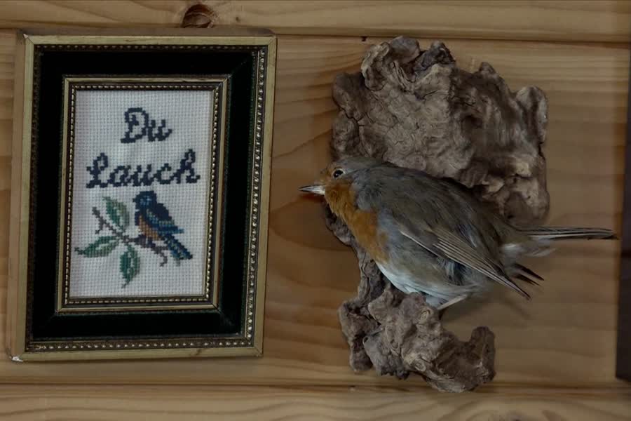 Binnen valt de liefde voor natuur meteen op. Aan de muur hangt een opgezette roodborst, een herinnering aan een vogeltje dat ooit tegen het raam vloog. “Ik wilde het niet begraven of weggooien, dus heb ik het laten opzetten. Daar moest ik zelfs een vergunning voor halen bij de politie,” zegt Mariëlle.