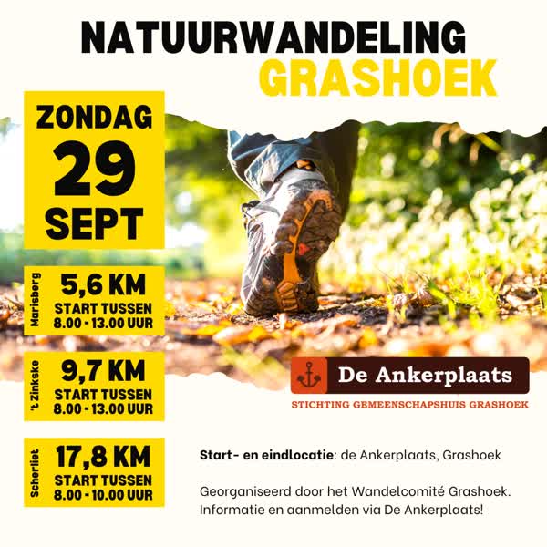 Wandelcomité Grashoek heeft 3 mooie routes uitgestippeld. Routes voor gezinnen, recreatieve en fervente wandelaars op zondag 29 september.