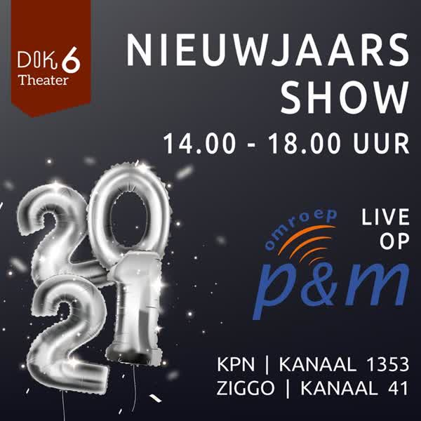 DOK6 Theater, lokale artiesten en Omroep P&M presenteren op vrijdag 1 januari tussen 14.00 en 18.00 uur de 'Nieuwjaarsshow'. Vanuit DOK6 Theater treden artiesten op en wordt er met gasten vooruitgeblikt op het nieuwe jaar. Omroep P&M zendt het programma live uit.