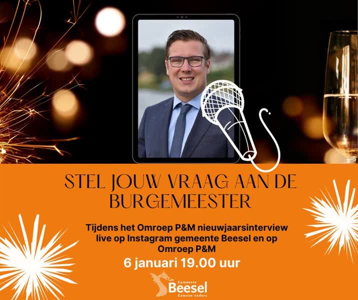 Stel jouw vraag aan de burgemeester tijdens het Omroep P&M nieuwjaarsinterview op 6 januari om 19.00 uur. Het interview is live te bekijken via Instagram van gemeente Beesel en via Omroep P&M.