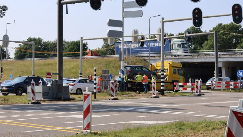 Op het kruispunt van de A67-afrit en de N277 zijn donderdag twee auto’s met elkaar in botsing gekome...