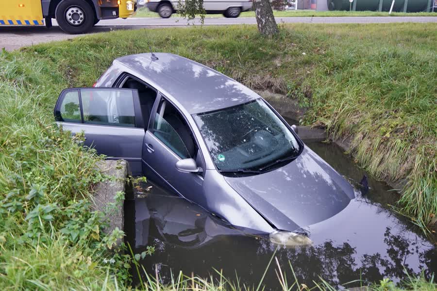 Volgens een correspondent miste de bestuurder vermoedelijk de bocht toen hij wilde afslaan naar een zandweg. Daardoor kwam hij in het water terecht. De automobilist kon op eigen kracht uit het voertuig komen en raakte niet gewond.