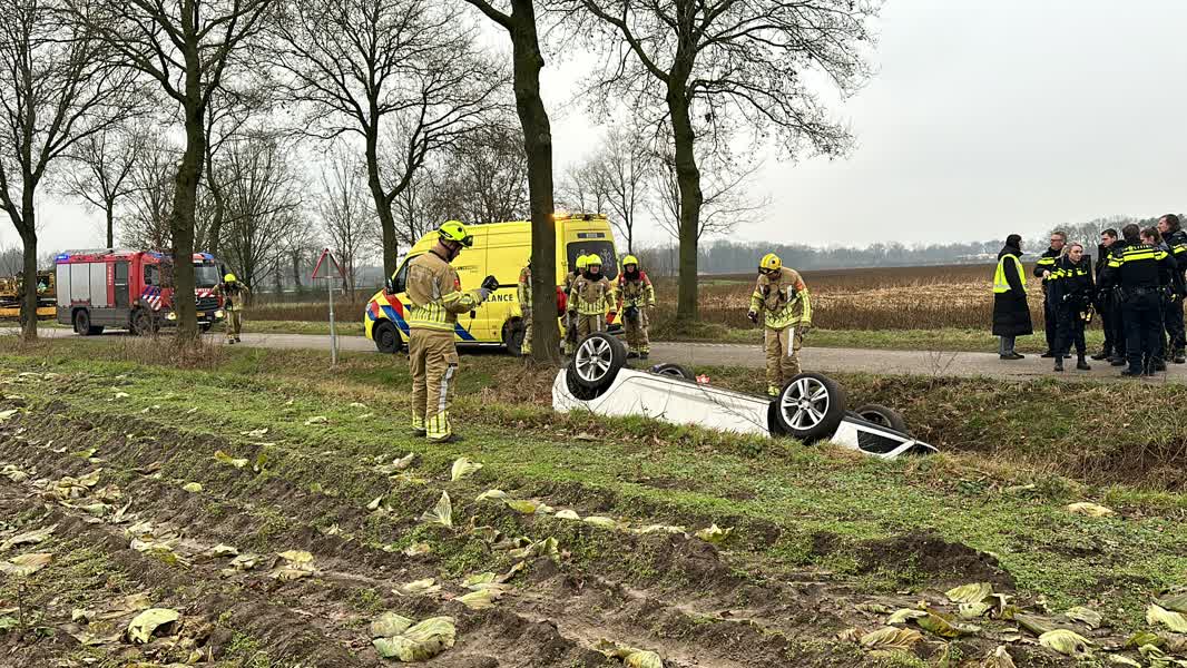 Auto op de kop in sloot na eenzijdig ongeval in Maasbree