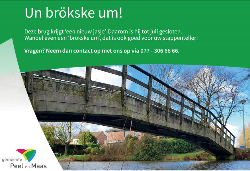 De bord staat bij de brug Bron: Gemeente Peel en Maas