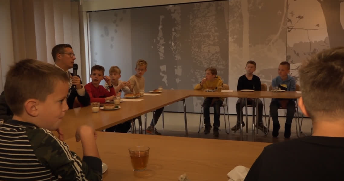 Burgemeester Vostermans ontbijt met kinderen van Beringse school