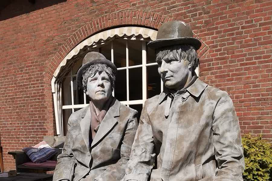Annemie Louman en Erwin van den Beuken, allebei toneelspelers bij toneelvereniging C.O.M. Meijel, zijn op Eerste Pinksterdag als levend standbeeld te bewonderen op ToonBeeld Thorn. Tijdens dit jaarlijkse evenement strijden de beste levende standbeelden uit de wijde omtrek om het Open Limburgs Kampioenschap.
