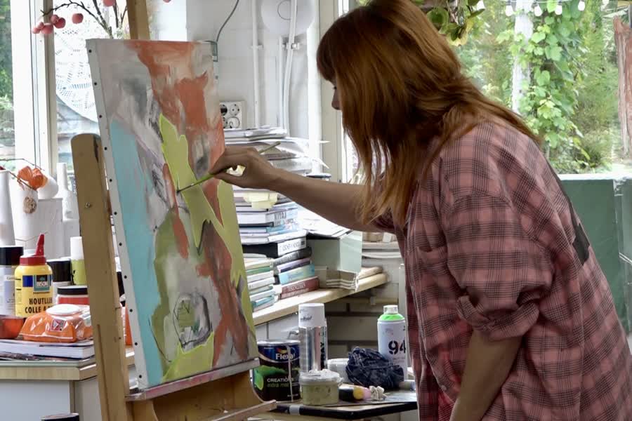 Een van de deelnemende kunstenaars is Iris Willemsen uit Meijel. Ze groeide op in Reuver en voelt zich sterk verbonden met de gemeente Beesel. Iris schildert in haar eigen atelier aan een kleurrijk, abstract portret van de burgemeester. “Ik ben klassiek geschoold, maar tegenwoordig werk ik veel ruiger en abstracter. Mijn stijl is wild en vol kleur,” vertelt ze.