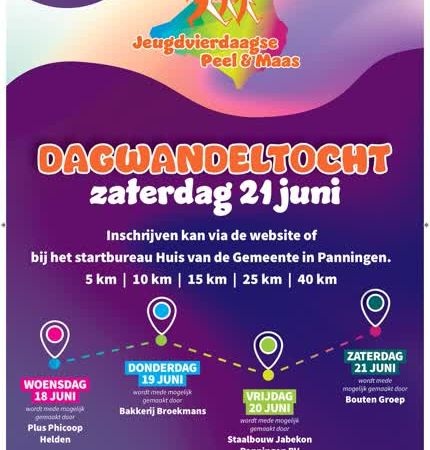 De 58e Jeugdvierdaagse Peel en Maas vindt volgend jaar plaats van 18 t/m 21 juni 2025.