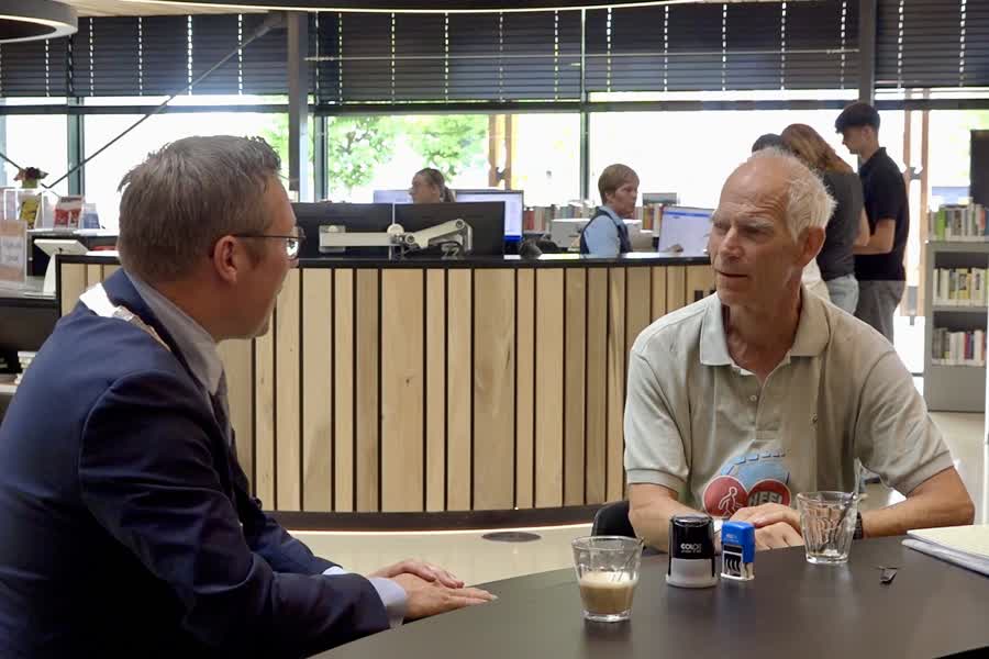 Vanwege zijn strakke tijdschema heeft Frank niet veel tijd om in elke gemeente uitgebreid te blijven hangen. Wel kijkt hij met een kritische blik naar de gemeentehuizen die hij bezoekt. Wat vindt hij van het Huis van de Gemeente in Panningen? “Ik vind het mooi, licht en open. De hartelijkheid en openheid die dit gemeentehuis uitstraalt, heb ik ook van de burgemeester ontvangen,” zo toont Frank zich positief.
