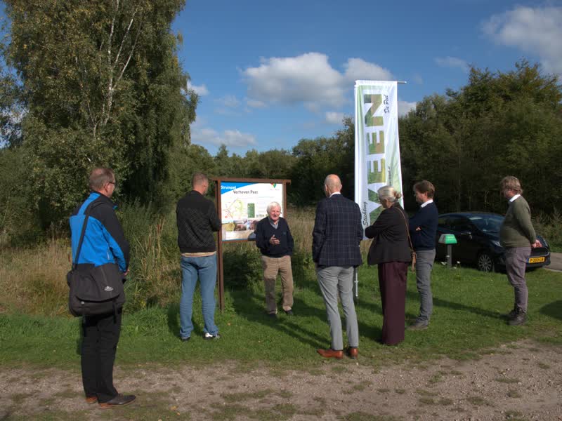 Bij het informatiepaneel gaven bestuursleden Wim Verdonschot en Piet Blankers uitleg over de Peelrandbreuk en de relatie met het ontstaan van hoogveengebied de Verheven Peel. Stichting VEEN greep het bezoek aan om enkele zaken te presenteren. Zo kreeg commissievoorzitter Sebastiaan Ruddijs het eerste exemplaar van een Geopadboekje over een ruim veertig kilometer lange fietstocht langs onder meer de Wilbertsput, de Deurnese- en Mariapeel en ’t Molentje. Naast geologie is daarin aandacht voor de verveningsgeschiedenis en het natuurbeheer.