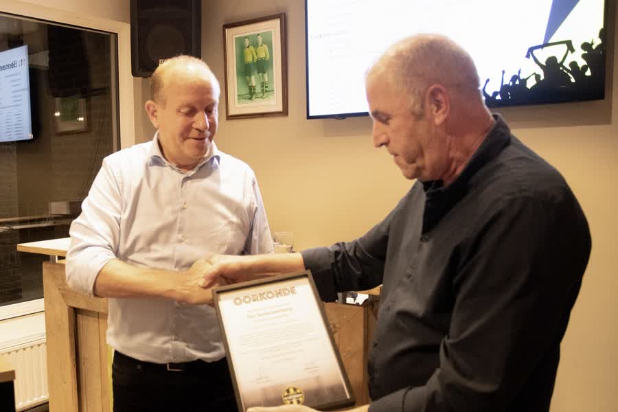 Aan het einde van de huldiging werd hij uitgeroepen tot erevoorzitter. Ook waren er mooie woorden voor zijn partner Marleen en hun drie dochters, die Spreeuwenberg heel wat uren hebben moeten missen in 37 jaar tijd. Namens de selectie van het eerste elftal sprak speler Burak Oosterveen een dankwoord uit voor de grote steun die hij in al die jaren voor de spelers is geweest.