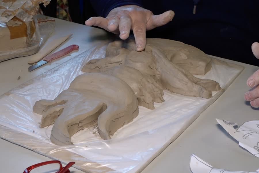 Onder anderen deelnemers van een keramiekcursus houden zich hiermee bezig. In het verleden was kleien een groot thema in de gemeente, vertelt kunstenaar en cursusleider Jos Beurskens. “Sint-Joris maakte echte kunstobjecten in klei. Dat was heel uniek, want het waren monumentale kunstwerken. De klei-industrie heeft hier in de gemeente heel veel welvaart gebracht.”