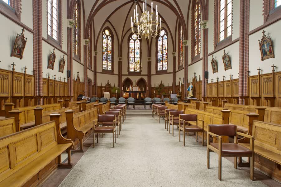 Ook de grafkapel wordt opengesteld. "Dit is nog altijd in gebruik," legt Willekens uit. "Wanneer een pater of zuster overlijdt, wordt hij of zij hier opgebaard. Vroeger deden alle paters hier dagelijks een mis, maar met honderden mannen red je dat niet met één altaar. Daarom is de kapel in de loop der tijd uitgebreid."