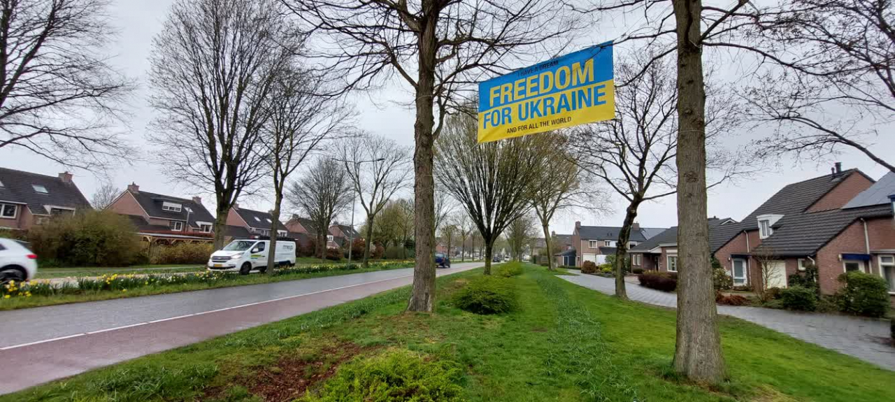 Nadat het spandoek met de tekst "Freedom for Ukraine" vorige week werd vernield, heeft de initiatiefnemer maandag in Panningen een nieuw doek opgehangen. Dat gebeurde op verzoek van de inwoners op de John F. Kennedylaan.