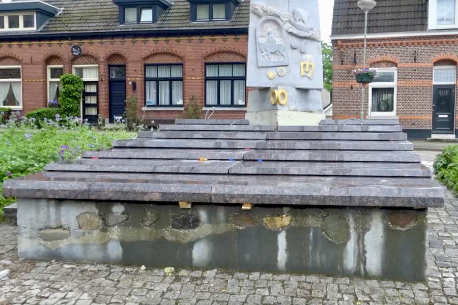 Van India tot BaarloIn de basis heeft het monument de vorm van de glooiing – de helling – van de Maas, legt Twan Smedts van stichting Baarlo Leeft uit. “Zoals je ziet heeft de kunstenaar er ook wat maaskeien in laten storten. Zodoende is het ook zichtbaar dat die bij de Maas horen”, vertelt hij al wijzend naar het grote kunstwerk op de hoek van de Marktstraat en Maasstraat.