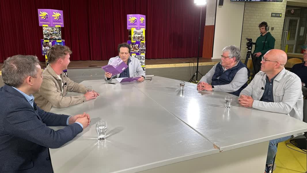 Een van de gasten aan tafel was Robert Janssen, bekend van L1. Hij blikte terug op zijn tijd op de LTS en later op het Bouwens. “Theoretisch ging het prima, maar met techniek was het een drama,” vertelde hij lachend. Zijn overstap van de LTS naar de MAVO, later HAVO en uiteindelijk het atheneum, laat zien dat schoolloopbanen niet altijd rechtlijnig verlopen. “Ik voelde me prettiger op het Bouwens dan op de LTS,” aldus Janssen, die later ook nog een studie bedrijfskunde afrondde en jarenlang actief is als presentator.