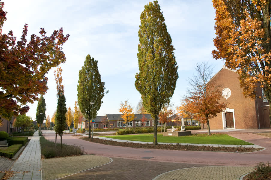De Onbevlekt Hart van Mariakerk (rechts in beeld) in Koningslust. bron: PeelenMaasNet