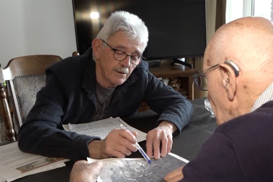 Piet Gommans (links) in gesprek voor zijn onderzoek.
