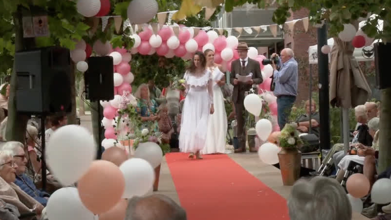 Boetegewoeën bij bruidsmodeshow van 80 jaar trouwmode