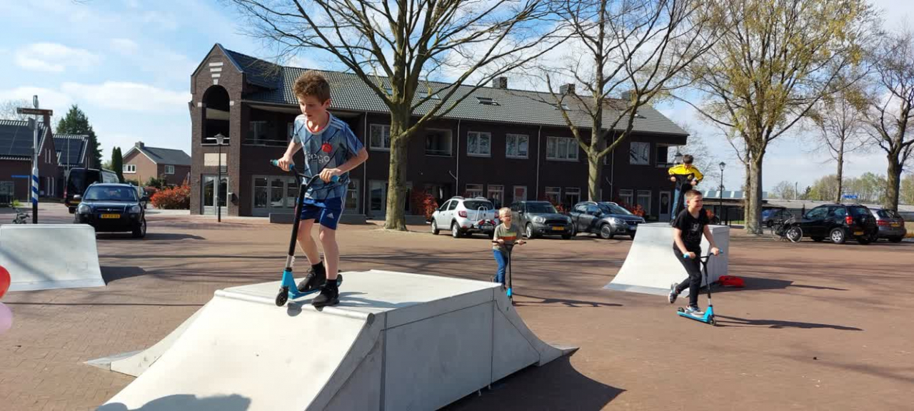 Skate-elementen op dorpsplein Grashoek