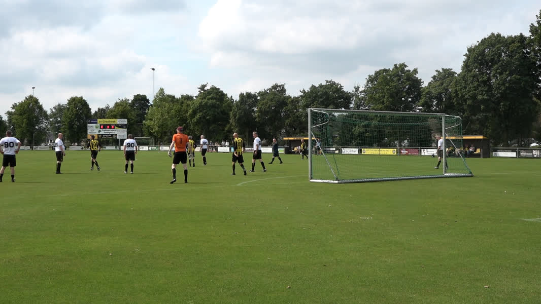 Sportpark De Peelrand stond het hele weekend vol met jubilarissen, maar ook langs de zijlijn was het druk. “Qua weer is het genieten, maar het voetbal valt een beetje tegen”, zegt een van de toeschouwers met een knipoog. De assistent-scheidsrechter van dienst is trots op de hoge opkomst. “Ik vind het geweldig dat die spelers allemaal hier zijn en nog zo kunnen voetballen.”