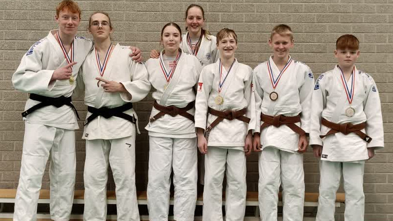 Zeven judoka’s van Judoclub Helden die zondag deelnamen aan het Districtskampioenschap onder de 18 j...