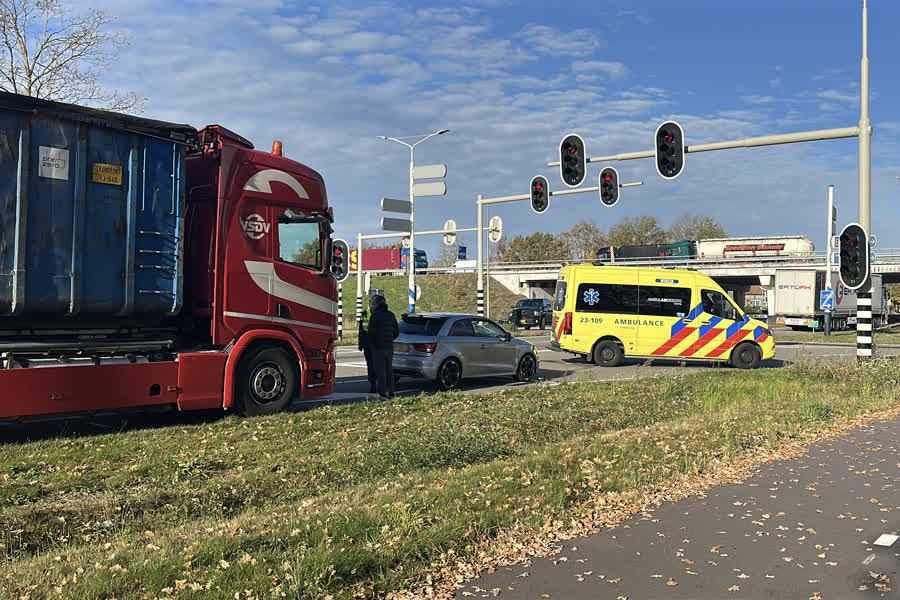 Het ongeluk gebeurde rond 11.20 uur ter hoogte van de oprit naar de A67 richting Venlo. De betrokkenen werden in de ambulance gecontroleerd, maar volgens een correspondent hoefde niemand naar het ziekenhuis.